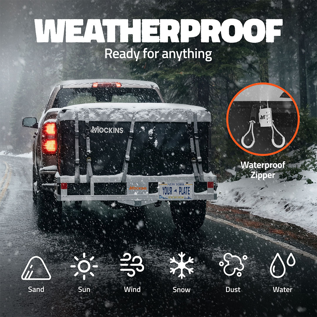 - Weatherproof vinyl 20 cu ft. cargo bag protects belongings with waterproof zipper