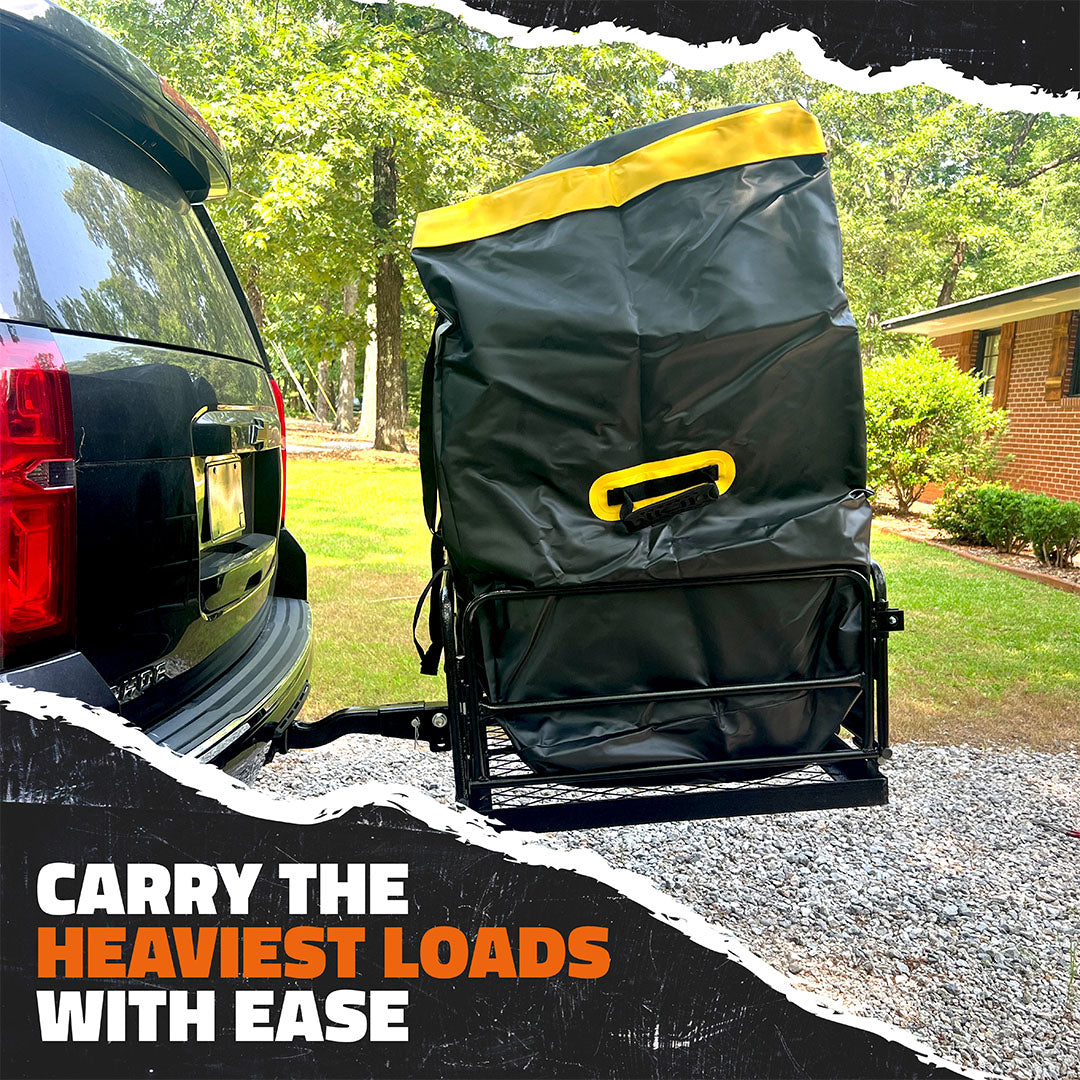 A: A specific weight limit is not provided. Always check your hitch carrier’s weight capacity and distribute weight evenly for safe travel.
