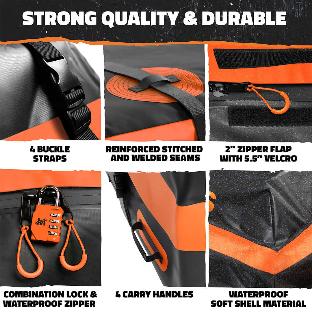 A: The flexible vinyl material allows for expansion. Secure items by tightening the provided straps or rolling the opening for a snug fit.