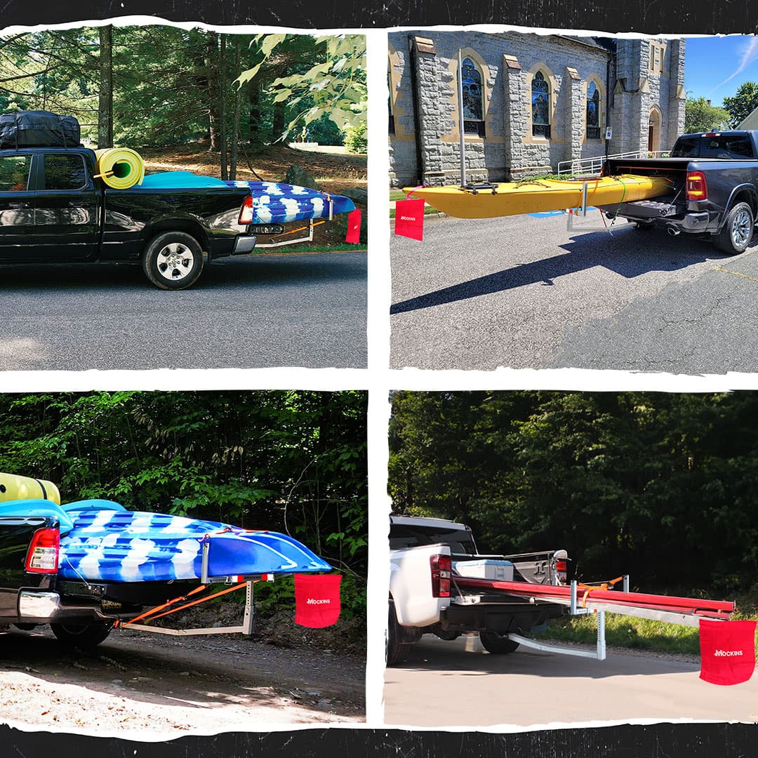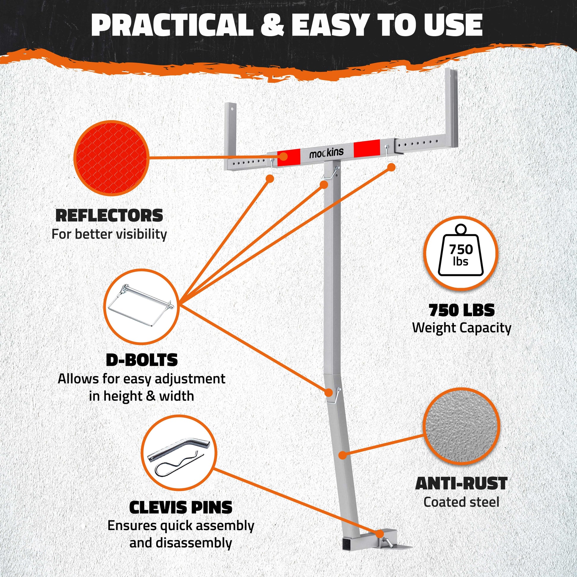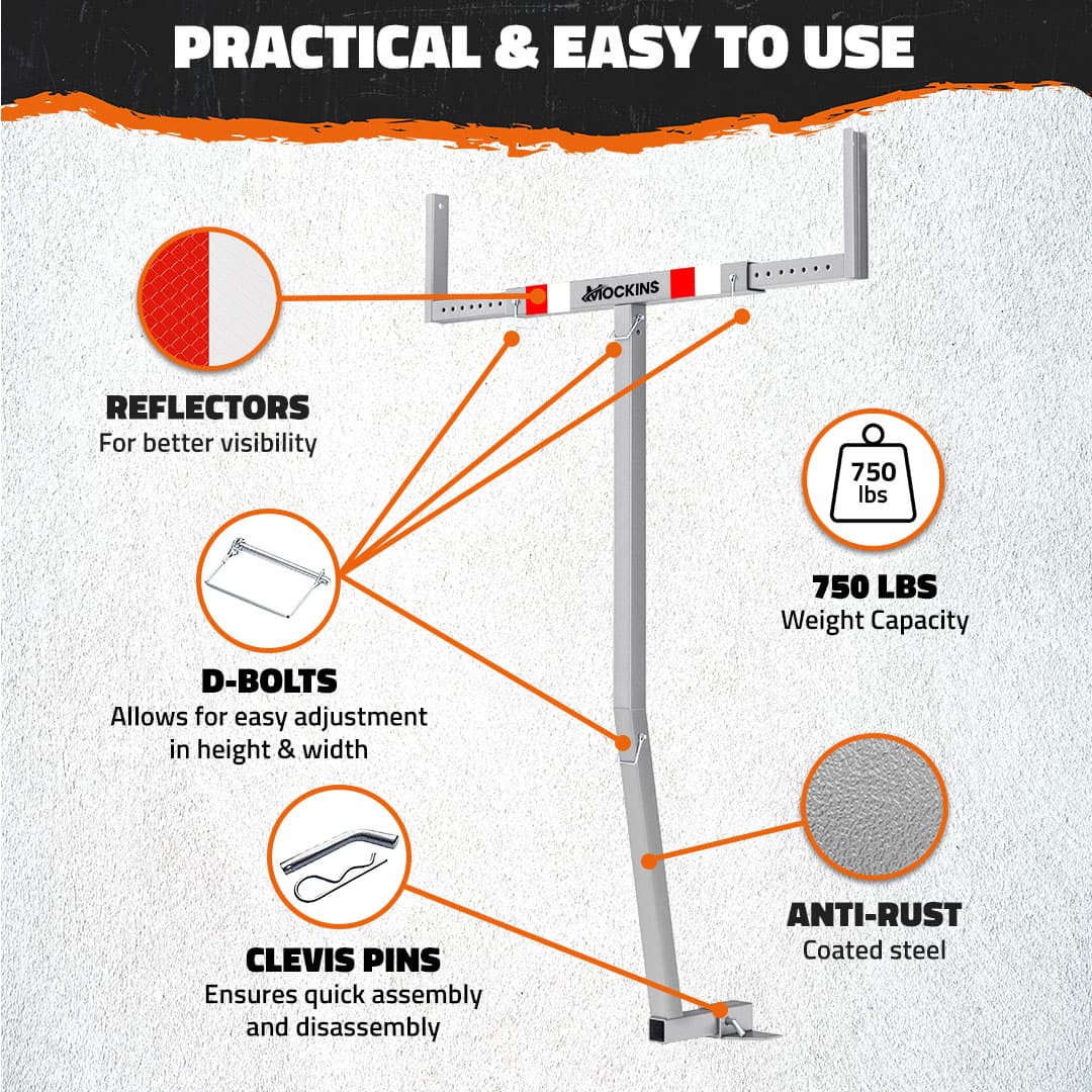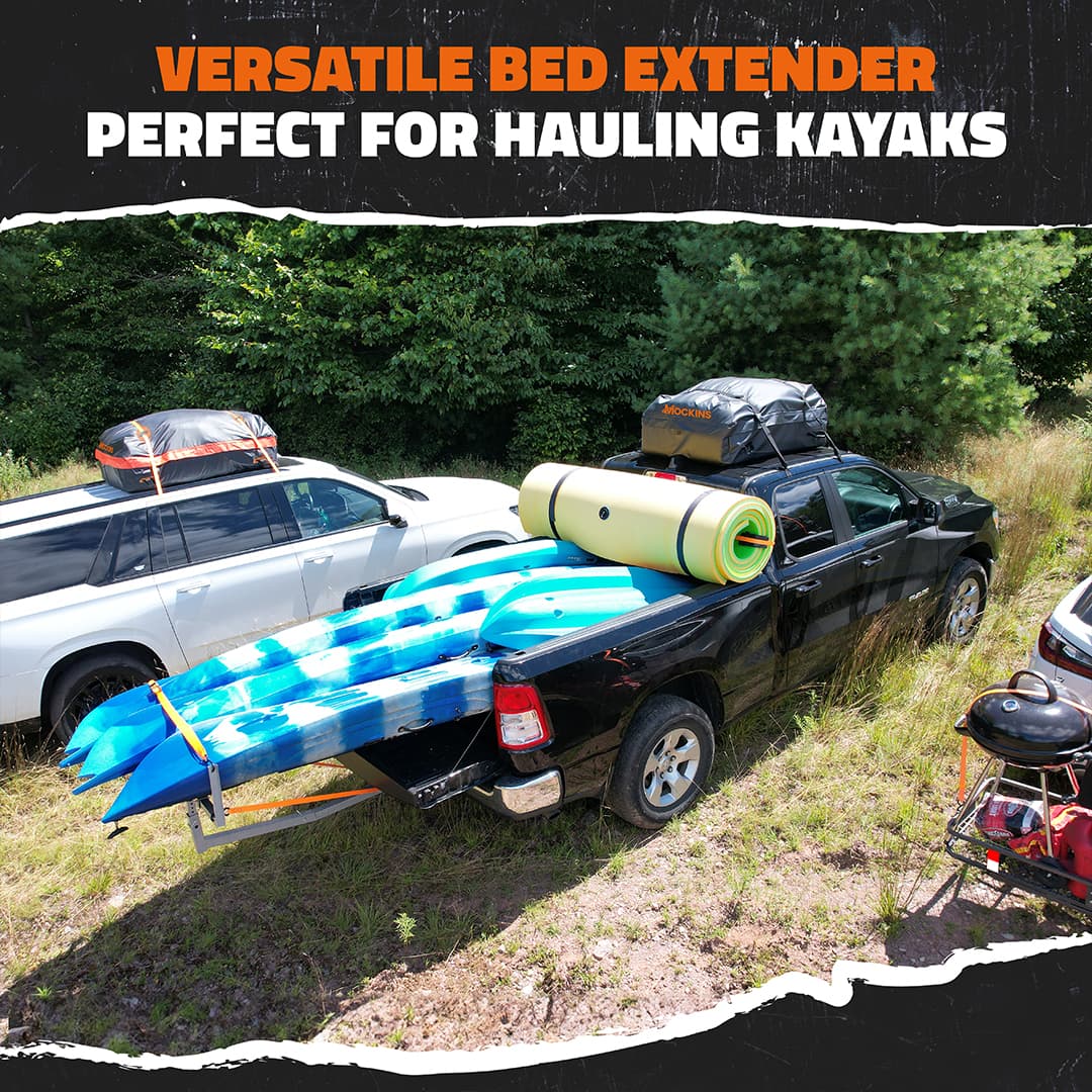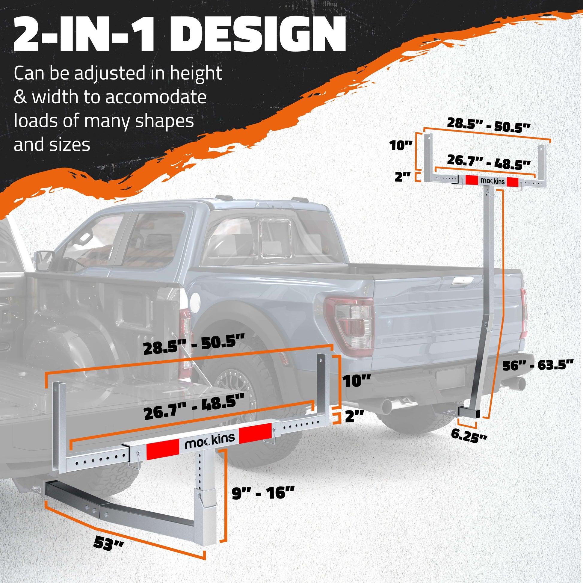 Give your truck more stability with the Mockins 750 lbs. Capacity Two-in-One Pickup Truck Bed Extender with Flag, Stabilizer and Ratchet Straps. This tailgate extender allows you to quickly load up your items and hit the road!