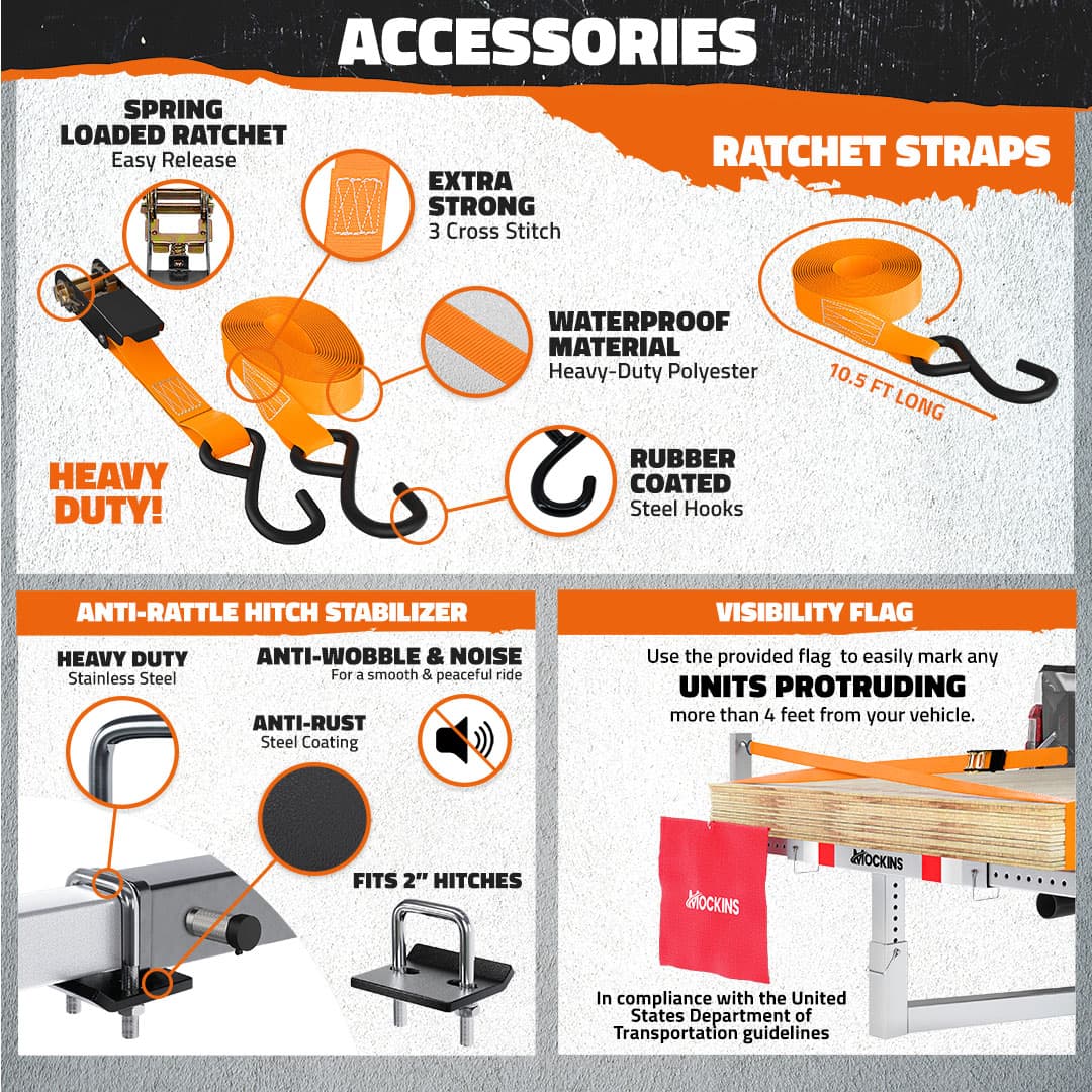 • Red/white reflectors and red flag are included to ensure your load is visible to other motorists and in compliance with the U.S. Dept. of Transportation.