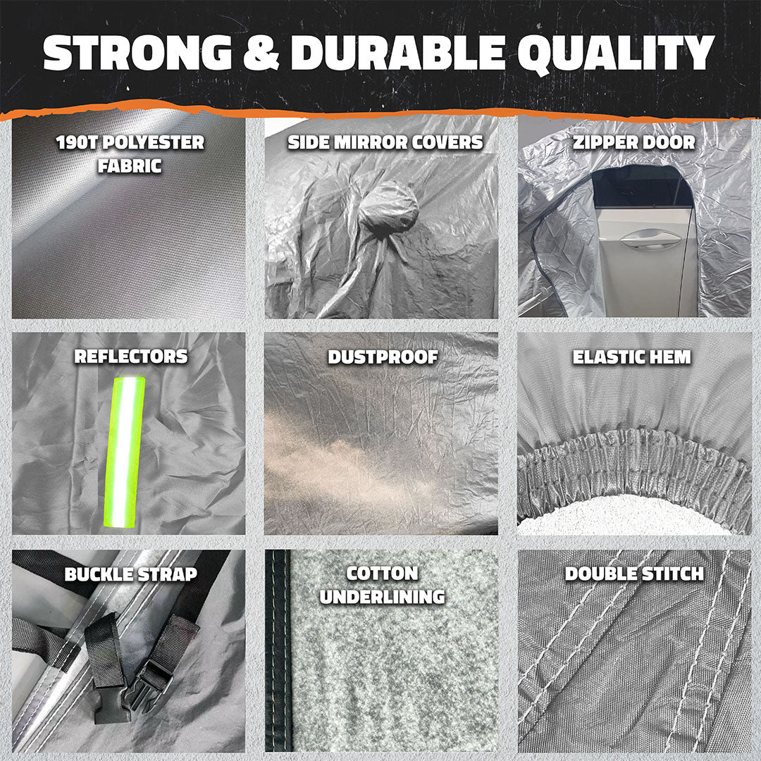 • Made from 190T silver polyester material that will protect your car from any outside or inside elements that may cause damage to your vehicle.